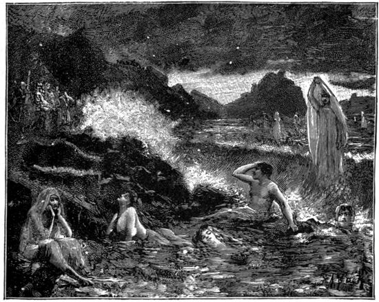 They sought a corner of the ruin and sat down beside each other, face to face with the silent desert. The young girl cowered upon the ground, pressing her husband in her arms, still striving with all her might against the penetrating cold. He drew her to his heart, and warmed her with his kisses.