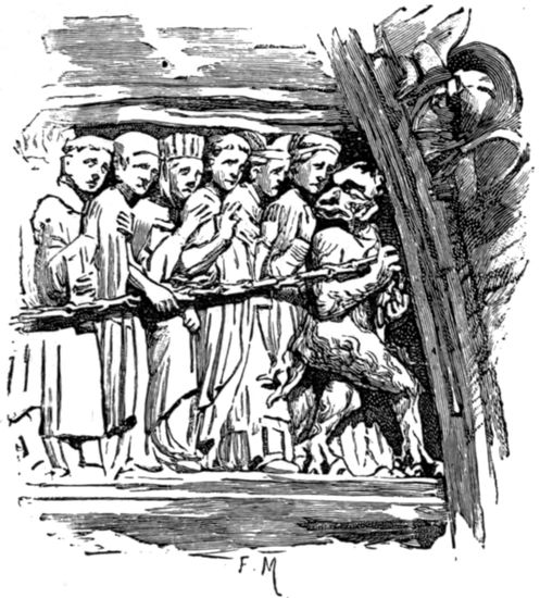 Domesticated monkeys, which for more than half a century had filled every place of service—impossible otherwise to provide for—stood 42at the doors, in conformity to the regulations, rather than to verify the cards of admission; for long before the hour fixed upon every place had been occupied.