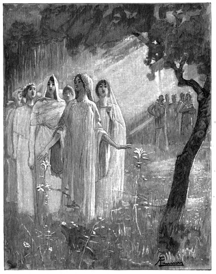 “A WHITE SHADOW STOPPED BEFORE THEIR ASTONISHED EYES.”