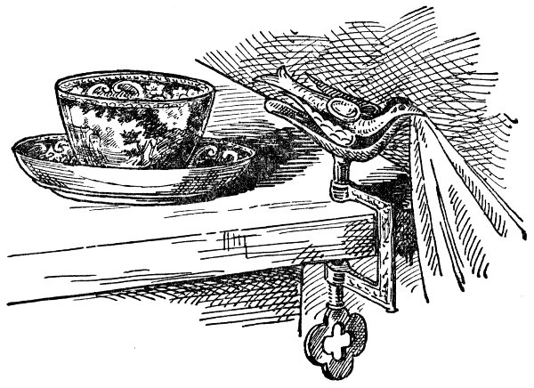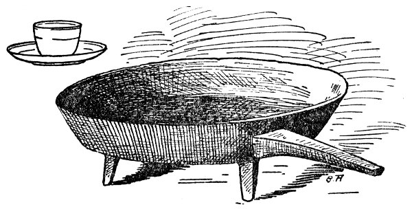 Snuffers. Here, as in many of the other pictures in this book, a tea-cup and saucer are placed near the drawing of the object to be described. This is added to give a correct idea of the relative size of the objects represented. In each case the object to be described and the tea-cup are drawn to the same scale; and, as you know about how large a tea-cup is, you get a clear idea of the size of the object by which it stands.