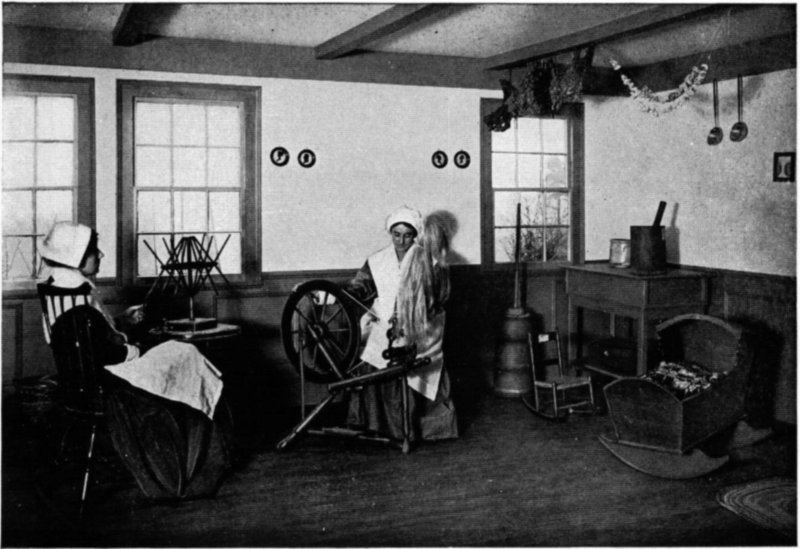 Breakfast finished, all became bustle and stir. Grandmother slipped briskly to her large, wool spinning-wheel. She was white-haired and full of years, but still she plied her task of spinning energetically and skilfully. She had learned it long before in a shire of England where wool was raised and made into cloth. Grandmother was graceful and dignified in carriage; for many years of her life she had walked back and forth at her wheel, lightly poised and alert. She lifted her spinning-wheel, and, with awkward help from Thomas, carried it into Mother Andrew’s room.