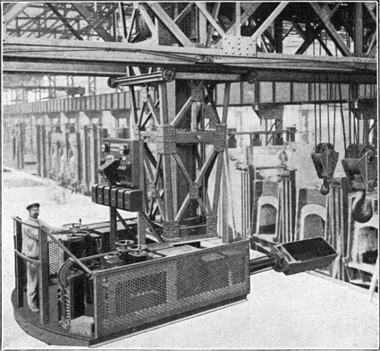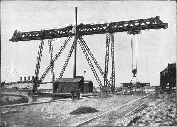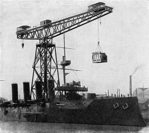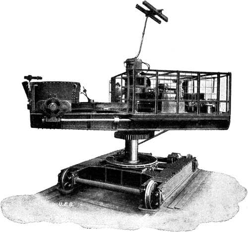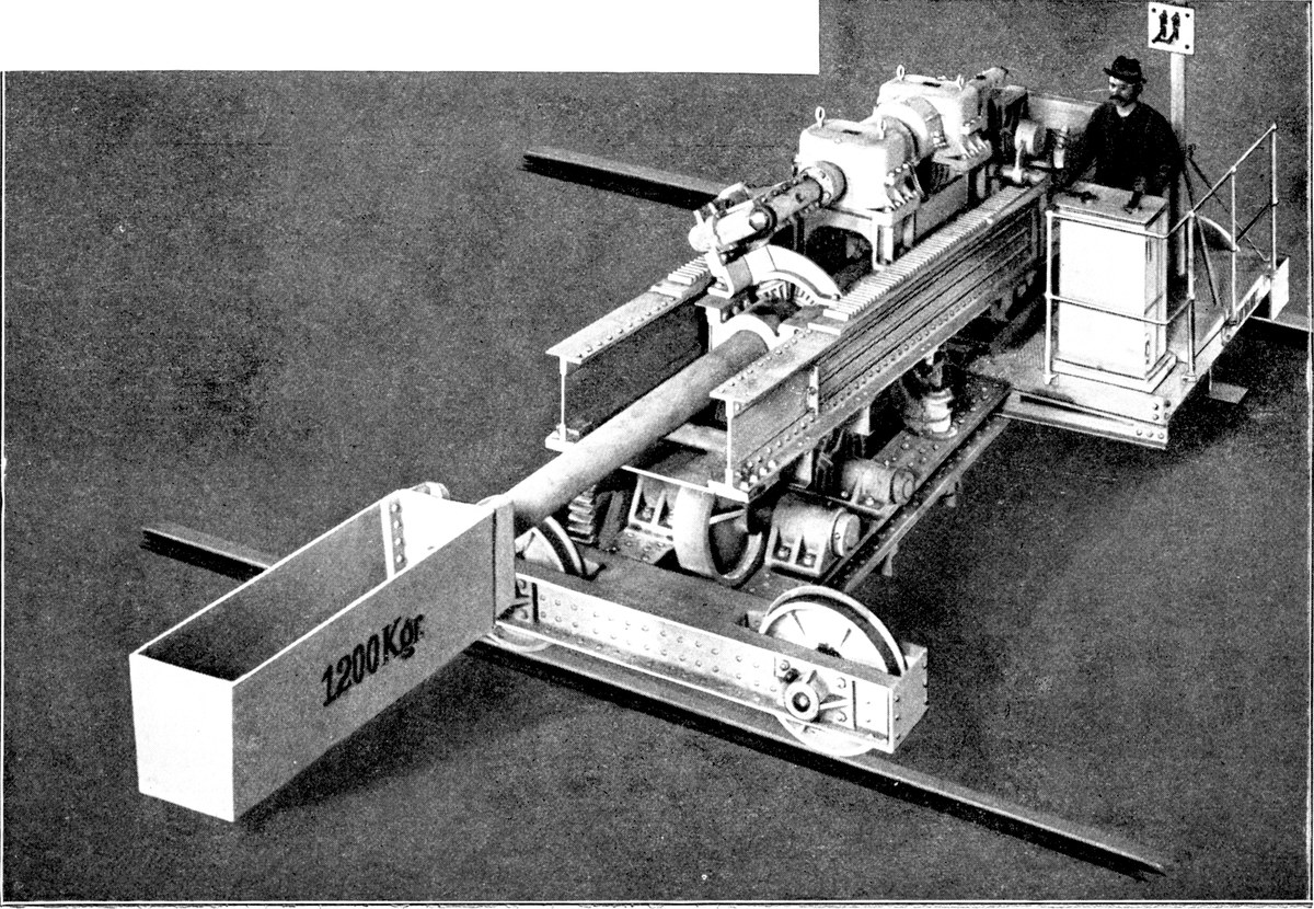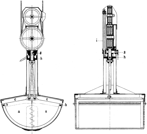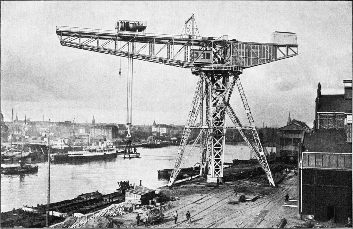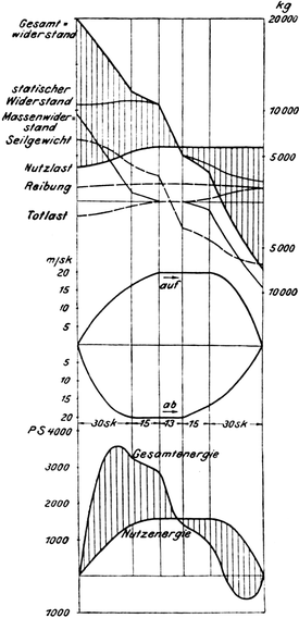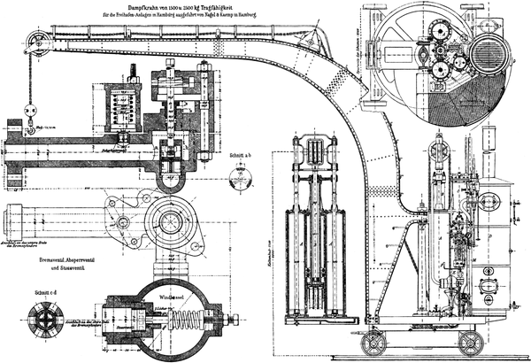 Eine völlig neue Periode begann erst mit der Beherrschung der Dampfkraft und mit ihrer Anwendung auf den Lastentransport. Die Dampfmaschine selbst stammt zwar schon aus dem Ende des 18. Jahrhunderts, die Einführung der Dampfkraft in den Landverkehr fällt aber erst in das Jahr 1829, ihre Anwendung für Fördermaschinen[S. 5] ungefähr in dieselbe Zeit und ihre Verwendung für Krane erst in die Mitte des 19. Jahrhunderts. Die unmittelbare Anwendung der Dampfkraft für Hebemaschinen blieb auch in der Folge auf Sondergebiete wie Fördermaschinen, Schiffswinden und Kaikrane beschränkt; denn Hebemaschinen mit eigenem Dampfkessel waren schwerfällig und kostspielig, während der Anschluß an zentrale Kesselanlagen durch lange Dampfleitungen hohe Instandhaltungskosten mit sich brachte. Das Bedürfnis nach einer zweckmäßigen Energieverteilung machte sich lebhaft geltend. In der zweiten Hälfte des 19. Jahrhunderts tauchten zahlreiche Bestrebungen dieser Art auf: Seilübertragung, Druckwasser und Druckluft wurden in vielen Ausführungen zur Energieverteilung benutzt. Von diesen Übertragungssystemen errang indessen kein einziges eine allgemeine Verbreitung, weil alle zu geringe Beweglichkeit besaßen und zu wenig für Fernübertragung geeignet waren. Es wurden daher bis zum Ende des 19. Jahrhunderts noch zahlreiche Hebemaschinen mit Handbetrieb ausgeführt.