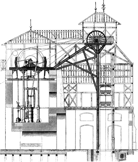 19. Jahrhundert: Vom Jahr 1820 bis zur Einführung der elektrischen Kraftübertragung in den Hebemaschinenbetrieb um das Jahr 1890.