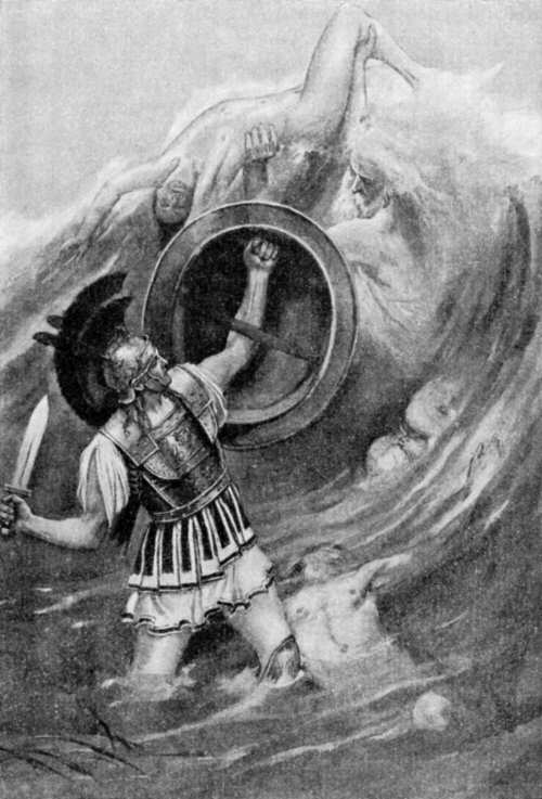 Tetis oyó á Aquiles y emergió, como niebla, de las espumosas ondas...