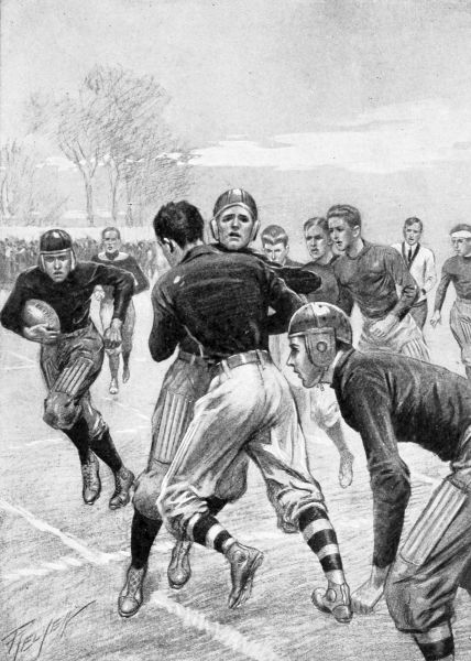 “Line up, fellows!” shrieked Evan. “Get a move on! Lower, you right tackle. Now make this go, fellows. Put it over! Devens back!” Gus fell from his place and formed into the tandem. “73—34—24—14—8—6—”