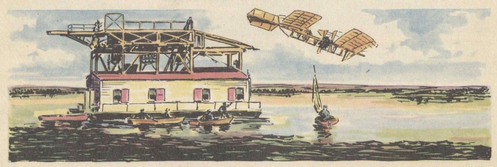 Professor Langley called his machine the Aerodrome, and by October, 1903, the plane was ready for its test flight, with Manley to guide it. The Aerodrome was to be launched from a catapulting platform built on the roof of a houseboat. The houseboat was anchored on the Potomac River near Washington. As it left the platform the machine crashed into the river, and the trial was a dismal failure. The newspapers and the public ridiculed Langley, but he and Manley, who was unhurt in the crash, repaired the machine for another trial. This test took place on December 8, 1903, and again the Aerodrome crashed into the river. Manley once more escaped injury, but Langley and the government were abused by the public for wasting money. Langley was out of money himself, the government could not furnish funds for further trials, so the experiments were ended. The professor, discouraged and brokenhearted, gave up.