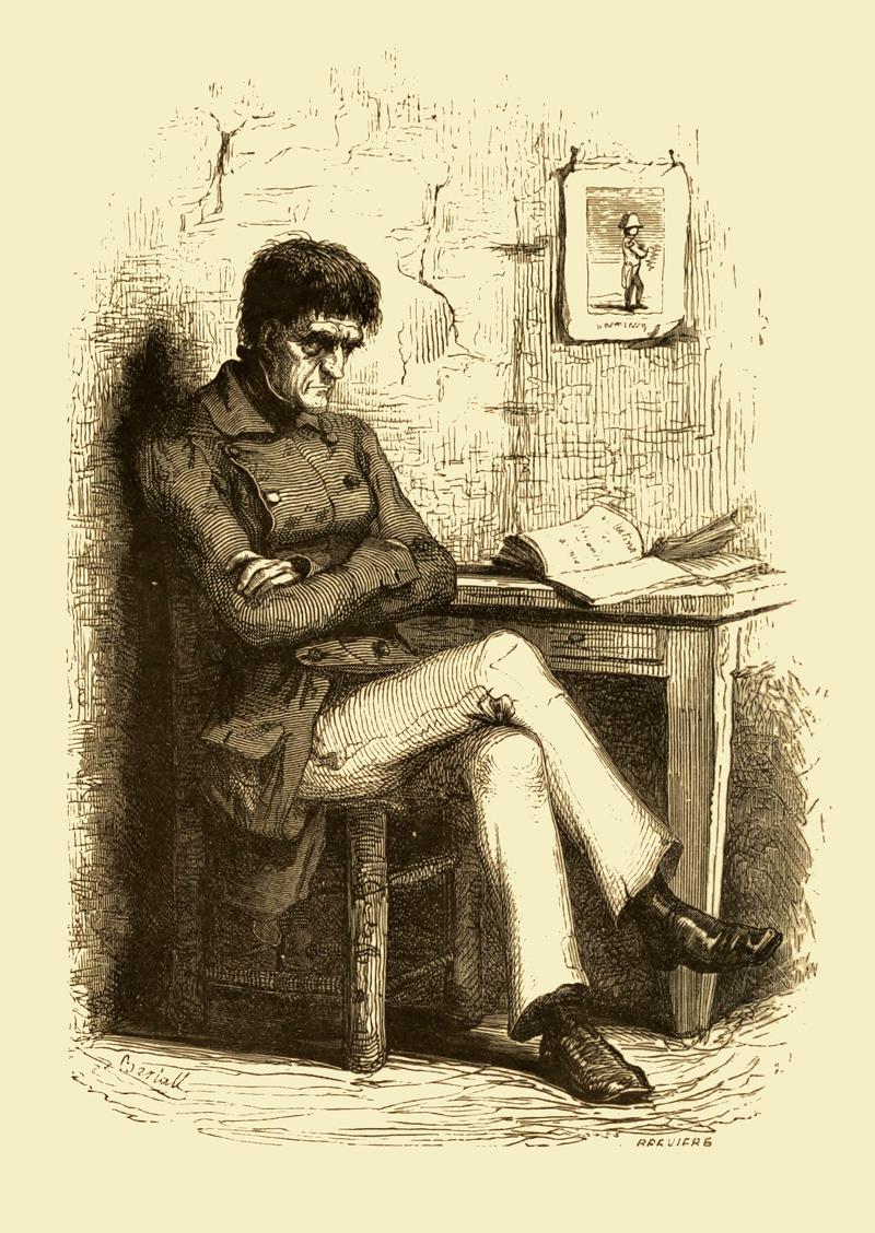 Le plaideur regarda le Maître clerc d’un air stupide, et demeura pendant un moment immobile. Habitués à tous les changements de physionomie et aux singuliers caprices produits par l’indécision ou par la rêverie qui caractérisent les gens processifs, les clercs continuèrent à manger, en faisant autant de bruit avec leurs mâchoires que doivent en faire des chevaux au râtelier, et ne s’inquiétèrent plus du vieillard.