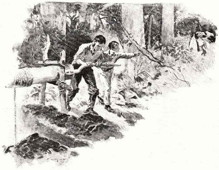 One day Malcolm McFee was sitting in front of the little sheet-iron house in which he and his father lived off in the interior of one of the British Colonies in South Africa, when he saw the latter coming rapidly towards him with his arms swinging. Mr. McFee was a small wiry man, all thews and sinews. He had never abused himself in any way, and he could strike a trot and hold it open-mouthed all day like a dog. He was loping along through the dust, and Malcolm saw that he was evidently laboring under some excitement. Now his father was never despondent or cast down, but he was sometimes more enthusiastic than at others, that was all, and never had the boy seen his father so wrought up as at this very moment. He entered the house and closed the door behind him. Then, not even breathing hard from his running, he put both hands on Malcolm's shoulders, and exclaimed, "Laddie, laddie, but we are going to strike it rich!"