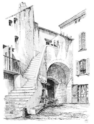 At Avignon the change of aspect is even more complete. “On arriving at Avignon,” says Prosper Mérimée, “it appeared to me that I had left France behind. Landing from the steamboat I had not been prepared by a gradual transition for the novelty of the spectacle which presented itself; the language, the costumes, the aspect of the{4} country, everything appears strange to one coming from the centre of France. I believed myself in the middle of a Spanish town. The crenellated walls, the towers furnished with machicolations, the country covered with olives and plants of a tropical vegetation, recalled Valencia, &c.”