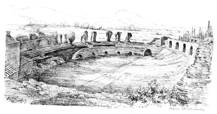 Under Rome the towns of Gaul were adorned with the profusion of splendid public buildings universal throughout the Empire, every town being provided with its Forum and Temples, its Theatre, Amphitheatre, Baths, Aqueducts and Triumphal Arches. The style of architecture adopted was naturally that of the Romans, but in many buildings and sculptures of the early centuries, a strong Greek feeling may be detected. This is also the case at Pompeii, in Southern Italy, which was likewise originally a Greek colony.