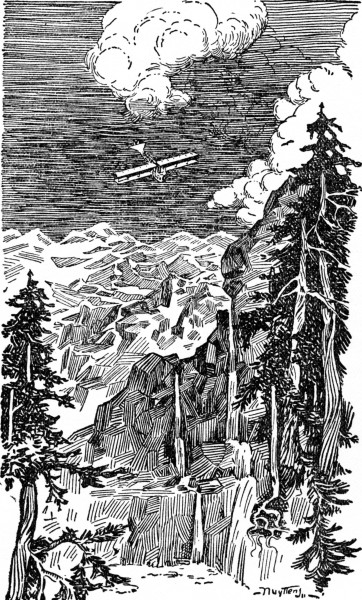 They made a beautiful flight along the course of tortuous Goat Creek and reached Goat Pass in less than an hour. So far there was no sign of the mountain party but—as the members of it were to turn south into the Herchmer range, at the headwaters of the creek—Frank laid a course along the ridge of these unmistakable heights. The entire country was either abrupt mountain slopes or heavy, abutting pine forests.