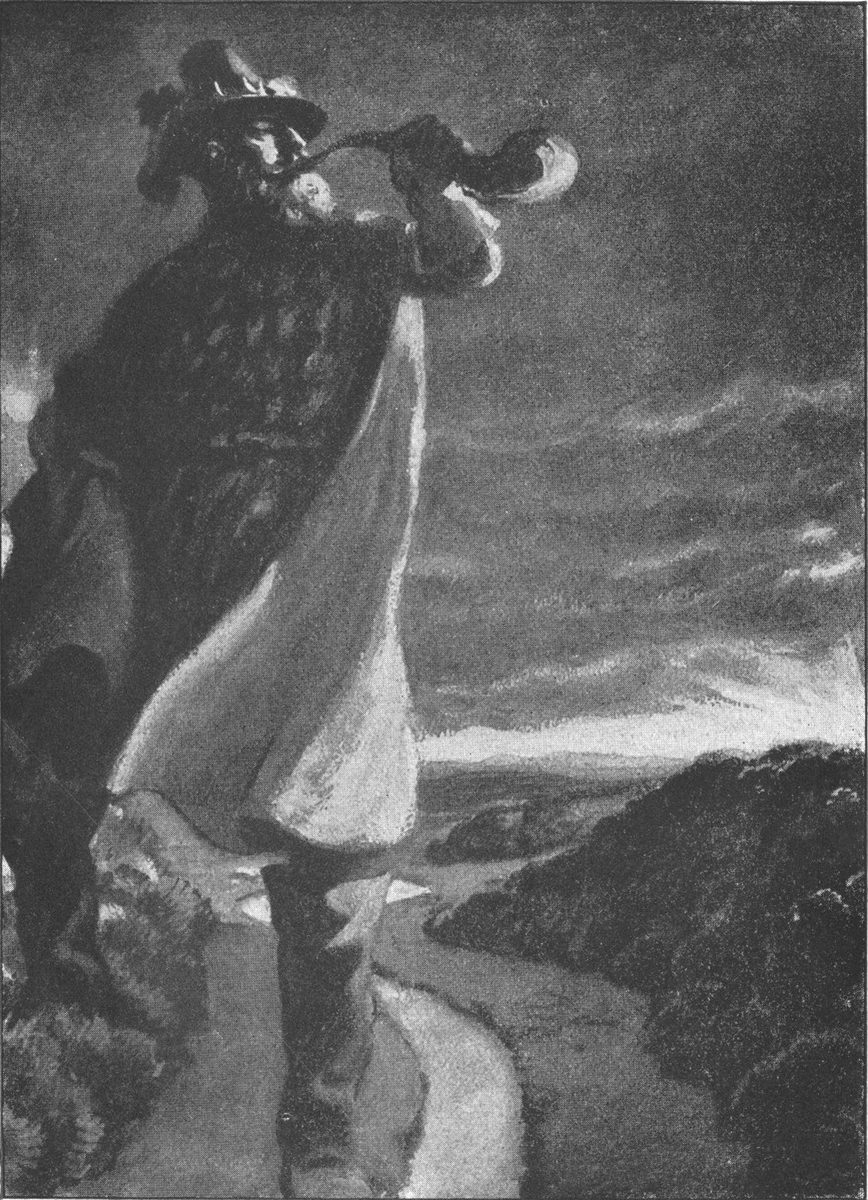 Da geschah es eines Sommertags, als der Wald mit seinen Zweigen um sich fächelte, daß ihm ein[S. 6] spaßiges braunes Ding vor Augen kam, das sich auf den Hügeln gegen Westen ausbreitete, und das er noch nie gesehen hatte.
