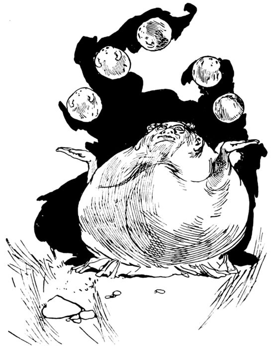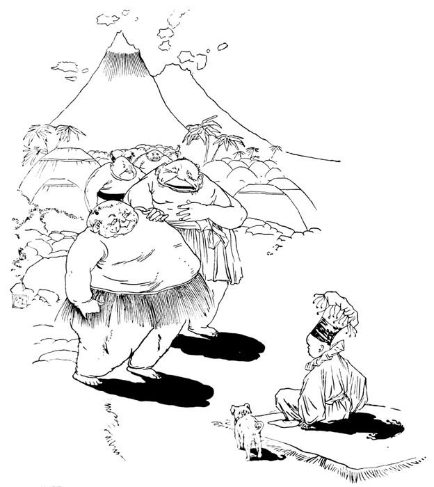But Rōlâ-Bōlâ’s messengers were at hand with most costly presents, and it all ended in their finding an almost similar case in their books, where a wounded prince, who was quite unable to roll an inch, had been placed upon an elevated platform in order that his round-bodied sweetheart might pass beneath and he be enabled to pinch her little toe while it was in the air at the highest point from the ground.