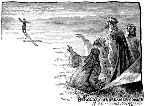 WHEN he was only a boy Joseph dreamed that he was out in the field with his father and his brothers binding sheaves in harvest time, and the sheaf which he bound stood upright, and all the other sheaves bowed down before his. Then he dreamed another dream, that the sun and the moon and eleven stars bowed down before him. When he told these dreams it made his brothers very angry, and they hated him, and the first chance they had they sold him a slave into Egypt.