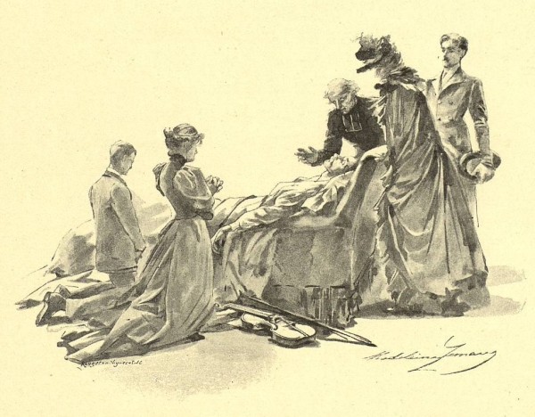 La nuit était venue et elle était encore dans sa chambre, les yeux vagues et sans larmes. Elle partit sans lui dire un mot, en baisant sa main avec une tristesse passionnée.