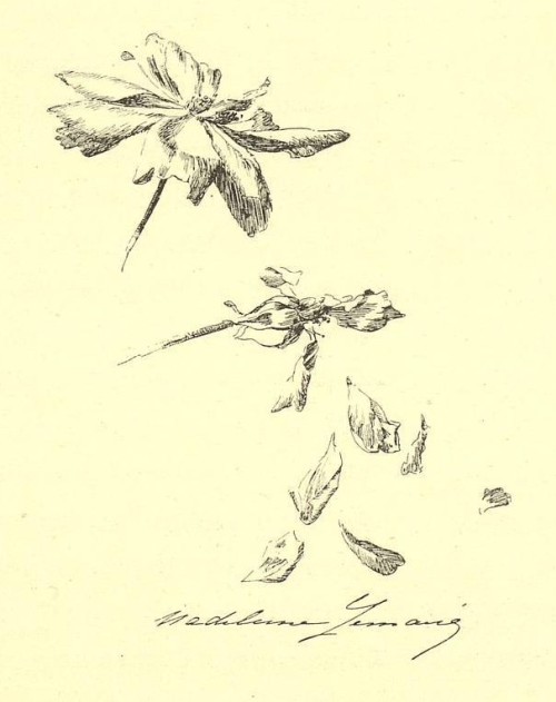 Heureux livre que le sien! Il ira par la ville tout orné, tout parfumé des fleurs dont Madeleine Lemaire l'a jonché de cette main divine qui répand les roses avec leur rosée.