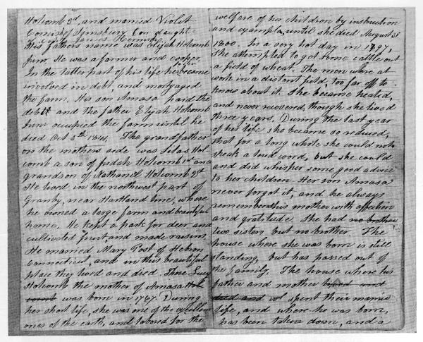 Figure 1.—Page from manuscript sketch of the life of Amasa Holcomb, now in the collections of the U.S. National Museum.