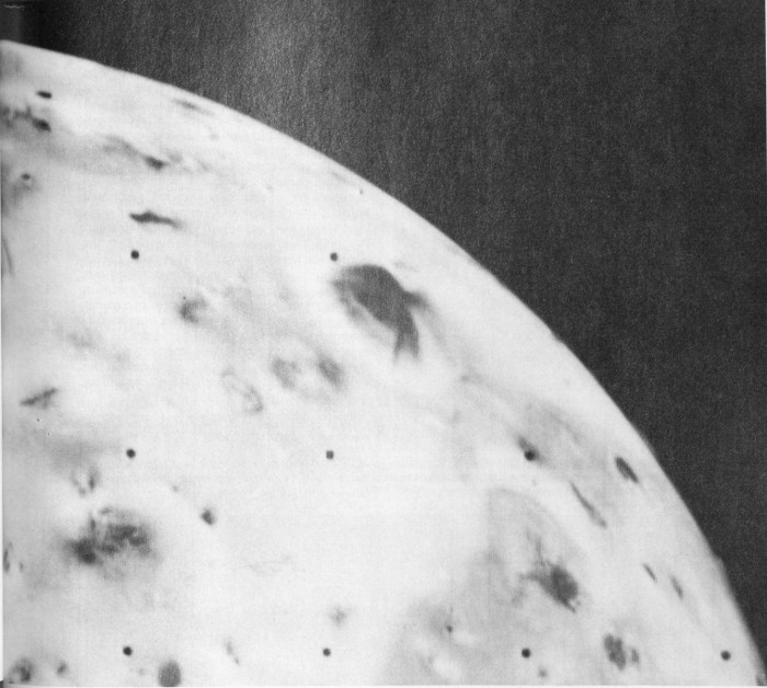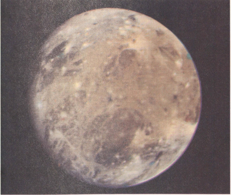 Io, innermost of the Galilean satellites, is the same size as our Moon. It orbits the planet in 42 hours, half the period of Europa. Like Europa, it has a very high reflectivity, but, unlike Europa, it has no spectral absorptions indicative of water ice. Before Voyager, identification of the surface material on Io presented a major problem to planetary astronomers.