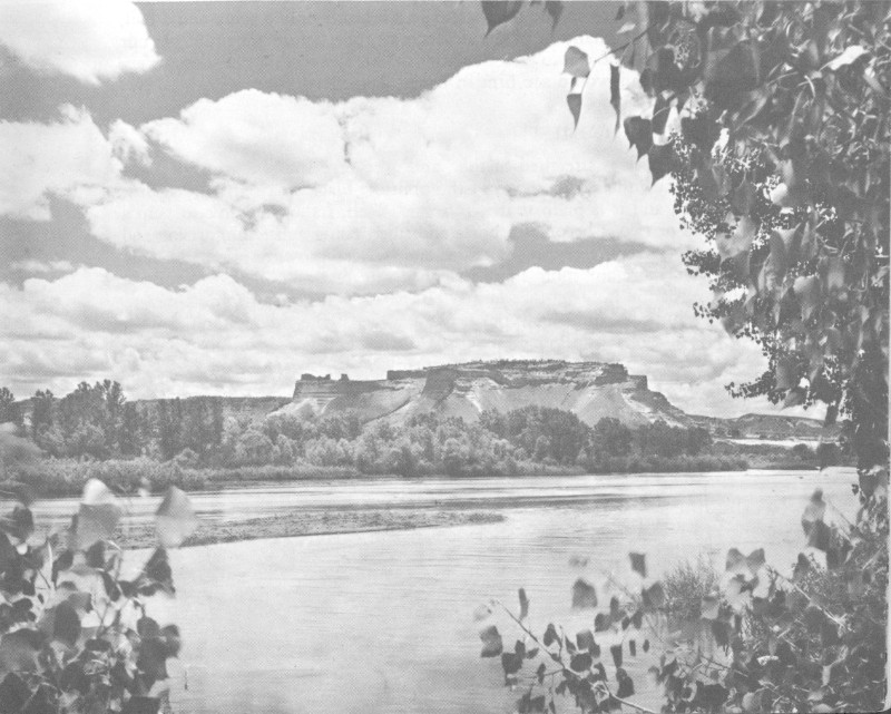Where buffalo once roamed there are now irrigation ditches, sugar beet, alfalfa, and potato fields, and prime Herefords. The wily Sioux have become peaceful citizens. The dusty roads of the covered wagons have been replaced by broad paved highways and fast automobiles. Bullboats and Conestoga wagons have been replaced by 55 long freight trains and cometlike aircraft. Scotts Bluff, named for one of General Ashley’s fur traders, the brooding sentinel of the Oregon Trail, now belongs to history.
