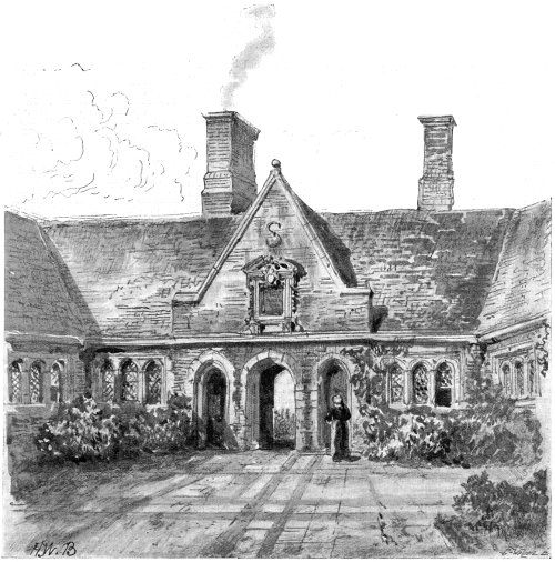 Cottages built of brick with stone “dressing” are common all over England, especially in almshouses. At Amersham are six little cottages built round an open courtyard. An inscription over the archway leading to the garden informs us that these cottages were built by “Sir William Drake, Barronet (sic), in the year of our Lord 1657, to the glory of God, and for the relief of six poor widows well reputed in this parish.” It is a pleasant home for these good old people and a pretty retreat where they may spend the remainder of their days in peace. There are many such in England: would there were many more! How far more pleasant it is to think of these poor old souls quietly living out the few months or years of existence, waiting for God to call them, in such an abode rather than in a workhouse, with its hard and fast rules, or some pretentious-looking asylum where official charity seems to stare one in the face at every turn. No doubt in these modern institutions sanitary arrangements are better, and matters are more practically attended to, but something seems to be wanting in them: they do not look like “homes.” We may perhaps be too sentimental, and possibly are arguing from what we should ourselves feel if placed in a similar situation, indeed we have known cases in which the poor old folks in the country have rejoiced at their quaint old habitations being pulled down and replaced by brand new houses.