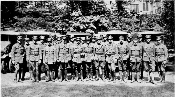 A SHARP whistle cuts the tense silence. It is the signal to start. It marks the line which breaks the past from the future; it is the boundary between the Known and the Unknown, and the frontier where duty and service merge. For a second, as the motors race, there is commotion—quickly settling into a rhythmic whir. The men are in their seats with somewhat of an echo of that whir in their hearts. The lieutenant’s car rolls slowly out of the gate, followed by the chef’s, and in turn by the others of the section, and as the last car crosses the threshold there is a cheer from the friends gathered to bid us Godspeed,—for Section XXXI is born.