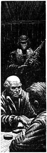 One of the men handed Roger a pair of insulated, electrically heated coveralls. Roger put them on without argument. Next, the man motioned toward the hatch with a machine pistol. "Get movin'," he snapped. "Make it quick. And don't try to run for it. You wouldn't get far."