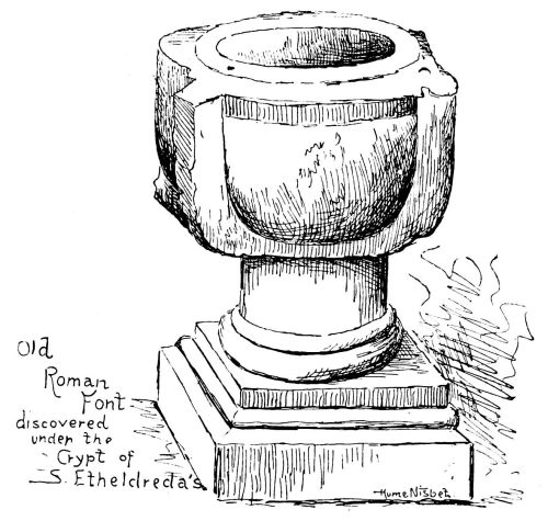 [23] Some time ago there was a controversy in the papers as to the propriety of opening the churches, City and others, “for private prayer.” Mr. Brook, the rector of this pretty church of St. Mary Woolnoth, gave his experiences of an experiment he made in this way. “The abuse,” he said, “of the privilege had been very great, though certainly, by reason of constant watchfulness, not as bad as it used to be. Your readers will scarcely believe it when I mention that dozens and dozens of times men and women have actually made a public convenience of the sacred building; others have come in and stripped themselves nearly naked in the darker corners, for what reason no one can say; others come for the sole purpose of altercation with the attendant, and one lately even struck and seriously hurt her; indeed, if it were not for the friendly policeman on the neighbouring point, such incidents would be of daily occurrence. It was only a few weeks since a child was born on the mat in the entrance of the church, though this is not so common as it used to be in days gone by; and when I first became rector of the parish the church, between one and two o’clock, was regularly used as a luncheon room.”