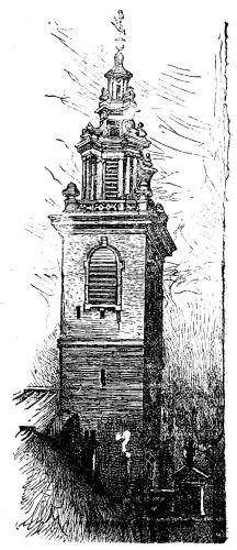 [22] It was thus that passing by St. Magnus’s on one Sunday afternoon, the door open, the organ pealing out, we expected the usual “Sunday service” in the City, with its dozen or so of congregation—the few old women, the sleeping old men, who had turned in for the purpose. Who could have thought of realizing so perfectly the traditional Swift story of “Dearly Beloved Roger”? For there was literally the minister and his clerk, reading and responding, the pew-opener sitting by the door, and not a soul besides! The pew-opener rose, making a piteously imploring, despairing appeal to remain; the incumbent glanced over, half-ashamed—but the intruder fled!