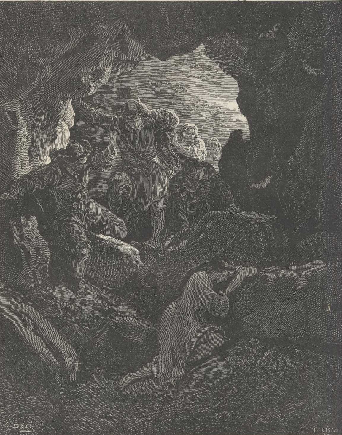 This soldier, then, that I have described, this Vicente de la Roca, this bravo, gallant, musician, poet, was often seen and watched by Leandra from a window of her house which looked out on the plaza. The glitter of his showy attire took her fancy, his ballads bewitched her (for he gave away twenty copies of every one he made), the tales of his exploits which he told about himself came to her ears; and in short, as the devil no doubt had arranged it, she fell in love with him before the presumption of making love to her had suggested itself to him; and as in love-affairs none are more easily brought to an issue than those which have the inclination of the lady for an ally, Leandra and Vicente came to an understanding without any difficulty; and before any of her numerous suitors had any suspicion of her design, she had already carried it into effect, having left the house of her dearly beloved father (for mother she had none), and disappeared from the village with the soldier, who came more triumphantly out of this enterprise than out of any of the large number he laid claim to. All the village and all who heard of it were amazed at the affair; I was aghast, Anselmo thunderstruck, her father full of grief, her relations indignant, the authorities all in a ferment, the officers of the Brotherhood in arms. They scoured the roads, they searched the woods and all quarters, and at the end of three days they found the flighty Leandra in a mountain cave, stript to her shift, and robbed of all the money and precious jewels she had carried away from home with her.