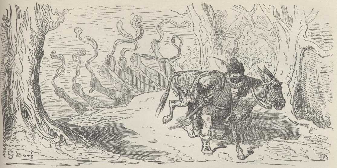 "Ho there! brother courier," cried the duke, "who are you? Where are you going? What troops are these that seem to be passing through the wood?"