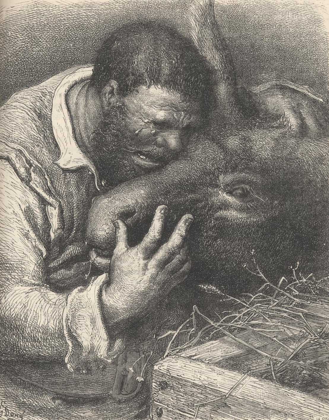 He got himself dressed at last, and then, slowly, for he was sorely bruised and could not go fast, he proceeded to the stable, followed by all who were present, and going up to Dapple embraced him and gave him a loving kiss on the forehead, and said to him, not without tears in his eyes, "Come along, comrade and friend and partner of my toils and sorrows; when I was with you and had no cares to trouble me except mending your harness and feeding your little carcass, happy were my hours, my days, and my years; but since I left you, and mounted the towers of ambition and pride, a thousand miseries, a thousand troubles, and four thousand anxieties have entered into my soul;" and all the while he was speaking in this strain he was fixing the pack-saddle on the ass, without a word from anyone. Then having Dapple saddled, he, with great pain and difficulty, got up on him, and addressing himself to the majordomo, the secretary, the head-carver, and Pedro Recio the doctor and several others who stood by, he said, "Make way, gentlemen, and let me go back to my old freedom; let me go look for my past life, and raise myself up from this present death. I was not born to be a governor or protect islands or cities from the enemies that choose to attack them. Ploughing and digging, vinedressing and pruning, are more in my way than defending provinces or kingdoms. 'Saint Peter is very well at Rome; I mean each of us is best following the trade he was born to. A reaping-hook fits my hand better than a governor's sceptre; I'd rather have my fill of gazpacho' than be subject to the misery of a meddling doctor who me with hunger, and I'd rather lie in summer under the shade of an oak, and in winter wrap myself in a double sheepskin jacket in freedom, than go to bed between holland sheets and dress in sables under the restraint of a government. God be with your worships, and tell my lord the duke that 'naked I was born, naked I find myself, I neither lose nor gain;' I mean that without a farthing I came into this government, and without a farthing I go out of it, very different from the way governors commonly leave other islands. Stand aside and let me go; I have to plaster myself, for I believe every one of my ribs is crushed, thanks to the enemies that have been trampling over me to-night."