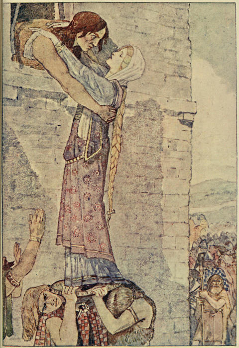 And then Sigmund sent for the priest who dwelt with them, and he was wrath and forbade her trysting with Feargus, and they kept her a prisoner[13] in her room until such times, said her father, as she promised to abandon her lover.