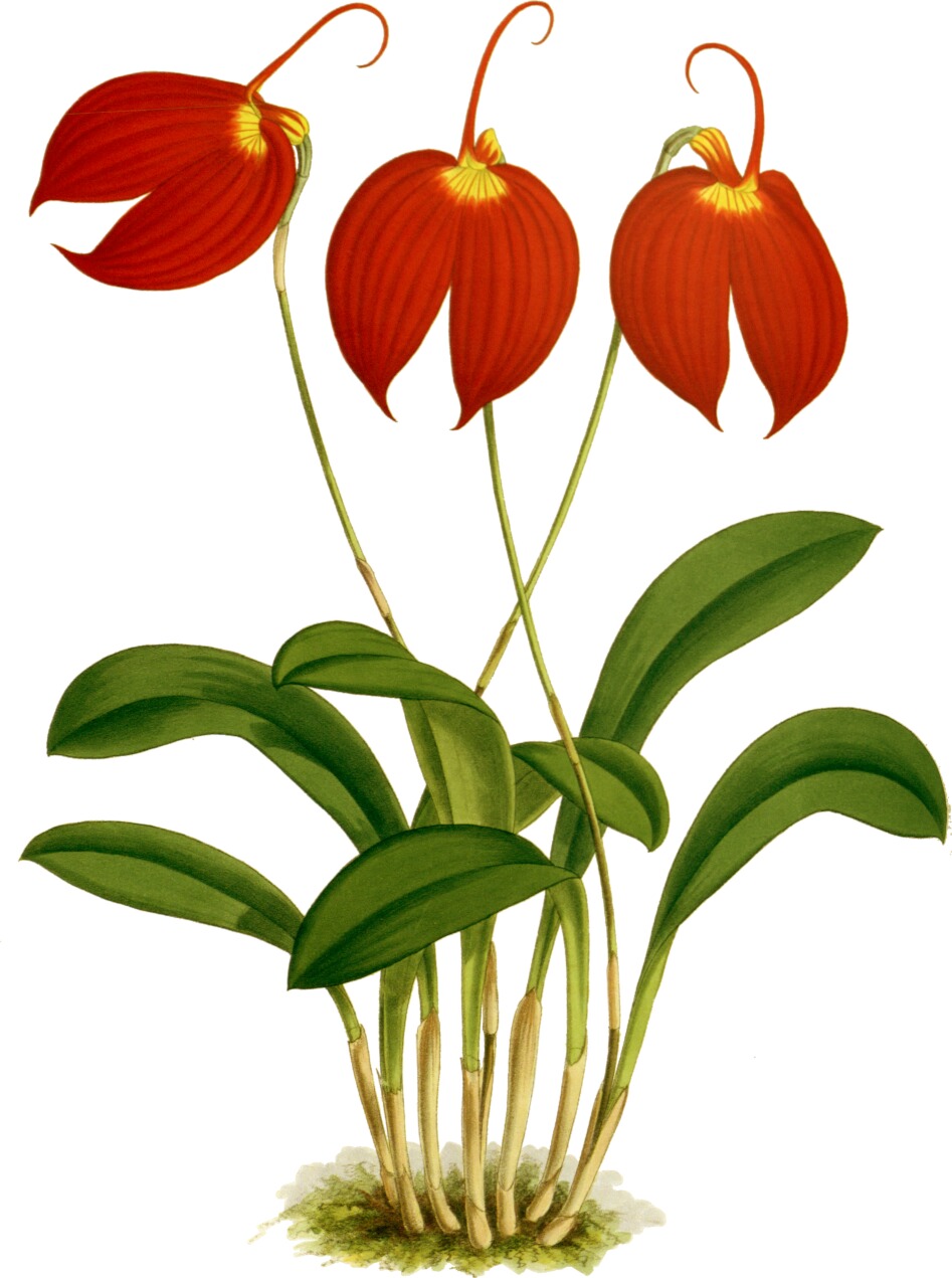 These plants come from Demerara. They are found growing on the outside branches of trees, where they get all the light possible. They will thrive on blocks of wood, also in baskets or pots. If grown on blocks they require some good live sphagnum moss about their roots; if in baskets or pots, a little rough fibrous peat and charcoal mixed together will suit them, but they must have ample drainage as they require a good supply of water in their growing season. When at rest they should get just enough water to keep the bulbs in a plump state. We have found the warm end of the Cattleya house to suit them. These Coryanths require a good deal of care to grow them well. We used, some years ago, to grow fine specimens and exhibit them, and they were always a source of great attraction.