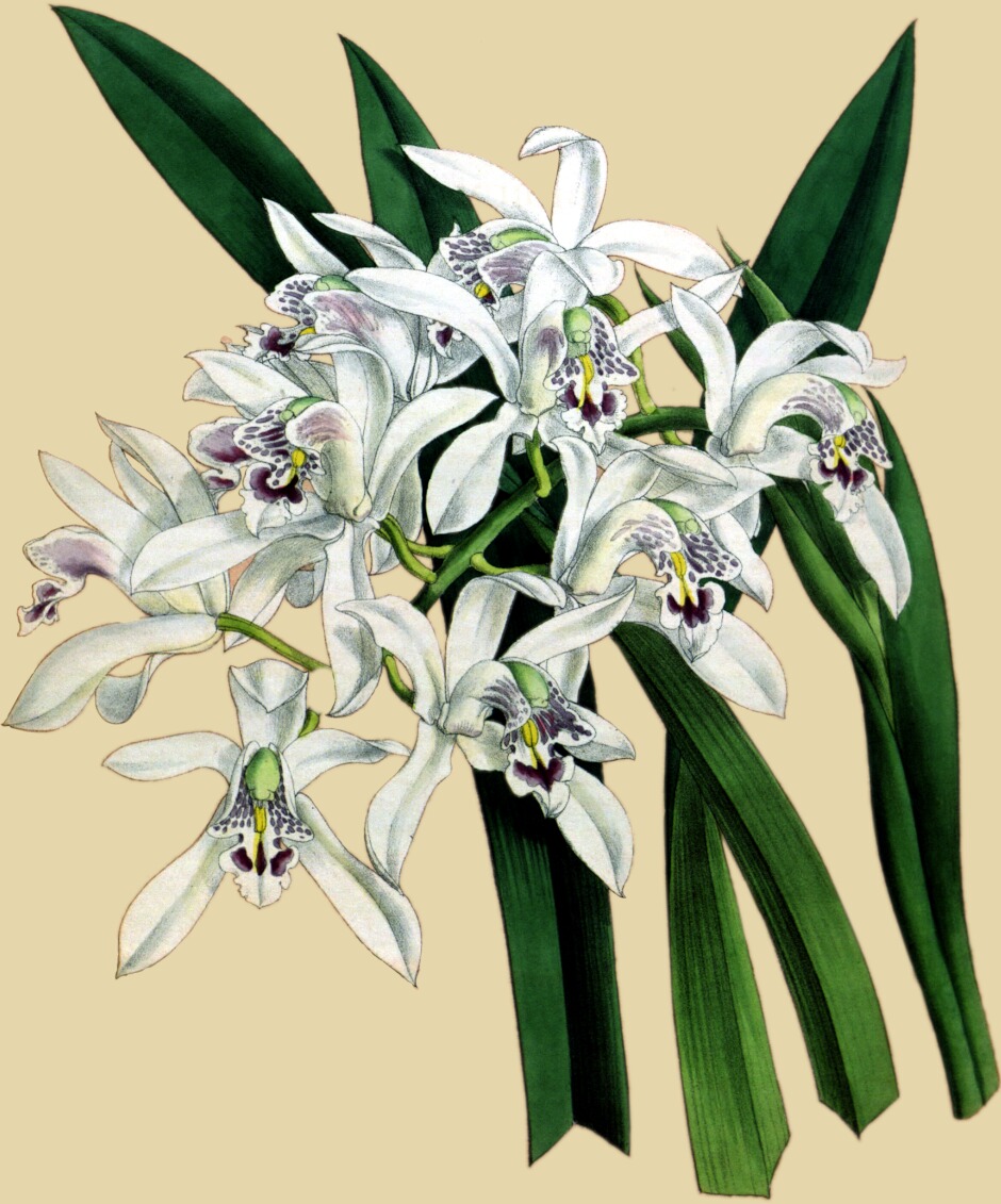 In the Cœlogyne we now bring to the notice of our readers we have one of the most useful species of a comparatively large genus, and one that blooms during the winter months, when white flowers are sought after. It is one, moreover, the flowers of which stand well when cut. We are indebted to Mr. W. Bull, of Chelsea, for the introduction of this species; which is a free bloomer when the bulbs are strong. It is a plant which possesses many good qualities, being a free grower as well as a free bloomer, and having the advantage of bearing fine evergreen foliage; it will thrive well in the cool house with Odontoglots; and besides all 94 this, it is a cheap plant, so that everyone having a cool house can procure and grow it without much expense or trouble. Our drawing was taken from a specimen which flowered in the Victoria and Paradise Nurseries.