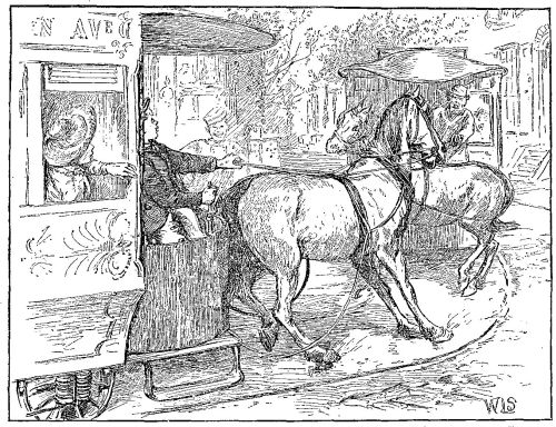 However, when the young lady had taken her seat, and begun gravely fishing in her long knit purse for five cents, the serious side of his situation rather troubled the boy, and for a while he kept his eyes fixed steadily between the horse's ears, as if trying to see how this queer sort of an adventure was going to end, when the sharp ring of the bell over his head caused him to give a very undriver-like jump as he turned to find out what was wanted.