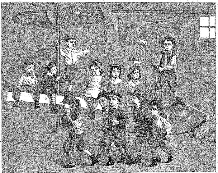 "There!" exclaimed Nan, jumping up, "that old thing's done at last. Come on, Marian! come, Philip!"
