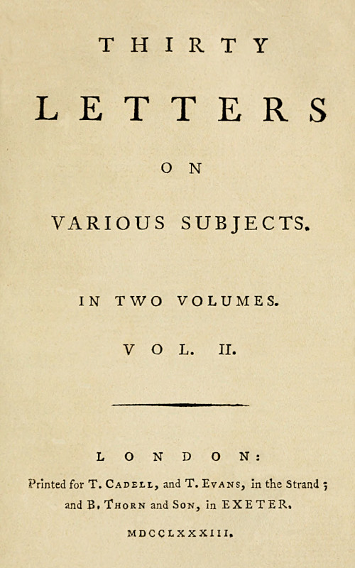 Title: Thirty Letters on Various Subjects, Vol. 2 (of 2)
