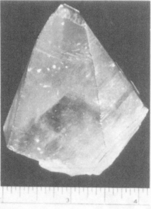 The optical property of calcite which accounts for its high value is its ability to separate, or refract, every single ray of light passing through it into two widely separated, easily distinguishable rays, hence doubling their number. This is called double refraction, and is shown by the double image of an object viewed through the calcite. Instruments which polarize light may contain calcite crystals. The artificial product, “Polaroid”, is used for a similar purpose.