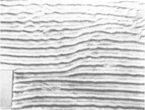 Hand specimen of shale shown in preceding picture. Note the characteristic thin layering or lamination.