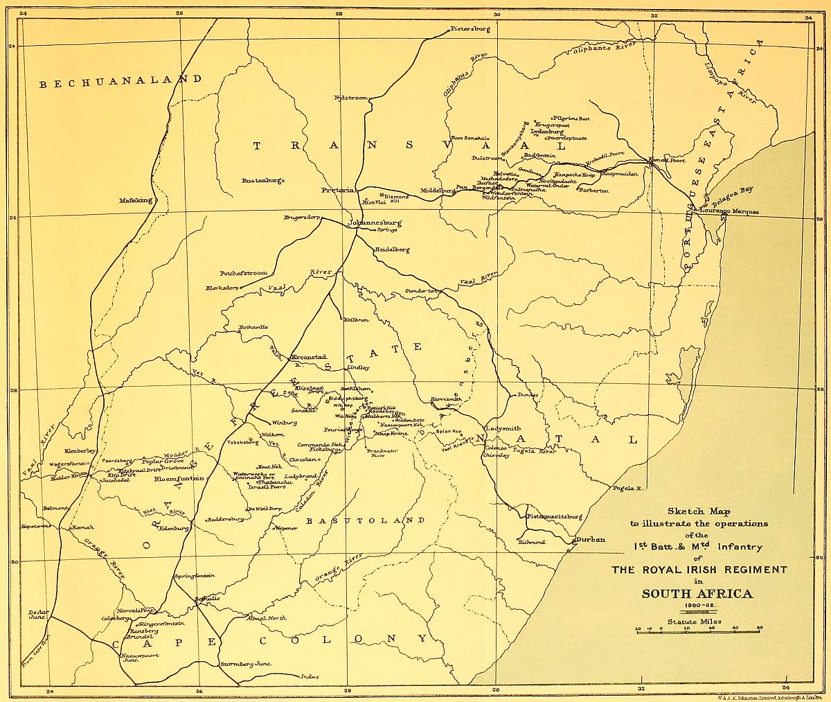 Many of the past and present officers of the Royal Irish regiment have given me great assistance in the later campaigns by preparing for me statements recording their personal recollections, and by lending me their diaries and letters, written at the seat of war; and several non-commissioned officers have supplied me with interesting details about episodes in South Africa.