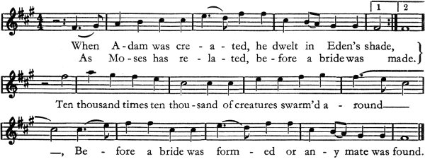 This song is attributed to Henry F. Chandler and dated 1854. ‘The Irish Girl’, as sung in Virginia, shows a similar rhythmic trend but is less closely related tonally. See Sharp, ii., 254. Greater melodic resemblance is seen in ‘Our Goodman’ Sharp, i., 269, tune “D”.