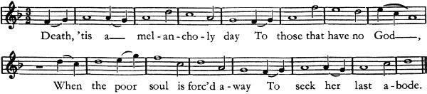 In looking through the folk-hymns in the second part of this collection one will see scores of tunes which are clearly recognizable as those still sung to ‘Barbara Allen’, ‘Lord Lovel’ and other ancient ballads. This is adequate evidence, I assume, as to where the folk sought and found its hymn tunes. The extent of this tune borrowing process is indicated on page 18f of this Introduction. The texts, on the other hand, may be from the pen of Watts or other eighteenth century English religious poets, or they may be the humbler creations of rural American religious verse makers, like John Adam Granade, or John Leland.