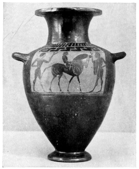 Black-figured amphora of the same general type as the preceding, but broader and heavier.