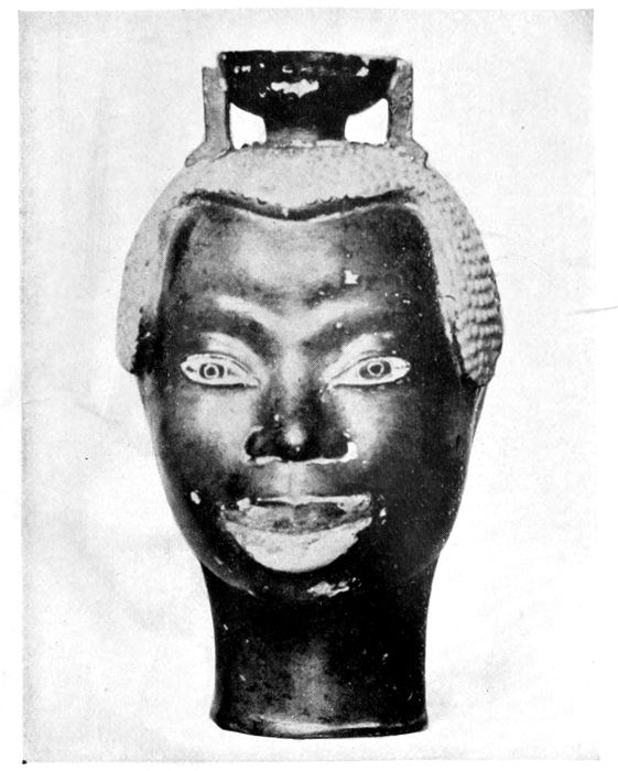 Aryballos in the shape of a negro’s head.