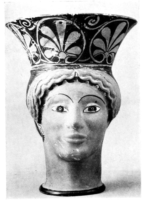 Cup without handles in the form of a woman’s head.