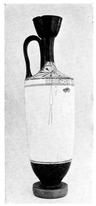 Lekythos of the later fifth century, of exaggerated slenderness.