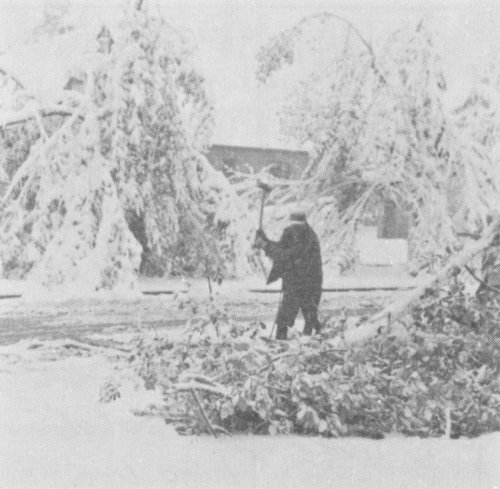 Chances are that the effect of the tranquilizer bulletin in the last Green Thumb has worn off. We can now carefully appraise the damage done to our trees. On streets where brush removal has been completed, it is easy to see that many trees, though battered and misshapen, are not a total loss. Now that the leaves have fallen, split crotches and stubs left in emergency removals are much in evidence. Our previous bulletin mentioned that there was no rush in doing this type of repair work, as long as it is completed by the time growth starts in the spring.