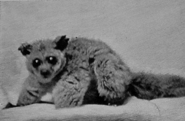 A third and very distinct type of American opossums is the one represented on page 380, which, from its mouse-like size and aspect, is commonly known as the Murine Opossum. The most distinct feature of this little animal is that, though a genuine marsupial, it has no pouch, but carries its young on its back, the little creatures twining their tails round that of their mother, and so securing a stable anchorage. Although thus loaded up and transformed for the time being into a sort of combination perambulator and feeding-flask, the happy but anxious parent pursues the even tenor of her way among the tree-branches and thicket-growths with almost unabated agility. This species, in common with Meriam's Opossum and the Woolly Opossum and several others which carry their young, to as many as a dozen {379}in number, on their backs, are denizens of tropical South America. One of these, named the Philander Opossum, attains to the somewhat larger size of about 2 feet in total length, the long prehensile tail representing, however, the greater moiety of these dimensions.