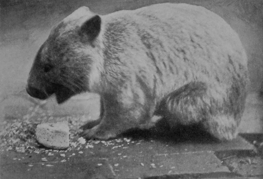 The flesh of the wombat is somewhat esteemed for food, being regarded by some as equal to pork, and much resembling it in flavour. The predilection of tame specimens for milk is very strong, and it has been recorded of one animal that it was not only in the habit of seeking out the milk-pans and pushing off the covers in order to drink the contents, but afterwards of taking a bath in what was left.
