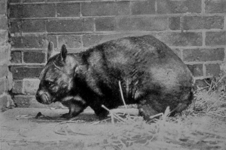 A remarkable habit has been accredited to the wombat which invites scientific investigation. It is said to be capable of sustaining life for an abnormally long period under water, and that when in the course of its travels it meets with a pond or river it does not attempt to swim, but, deliberately entering the water, walks along the bottom, and so emerges on the opposite bank.